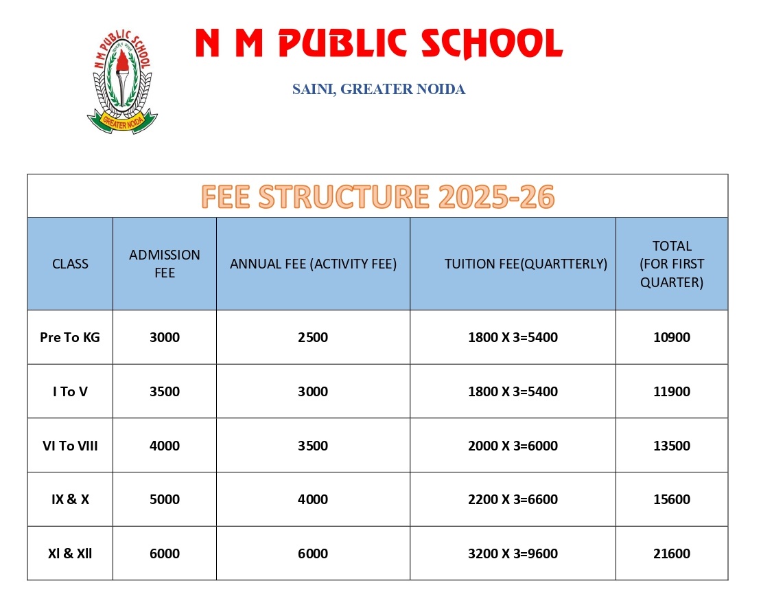 - Local cheque / Pay Order (Payable to N M Public School) in the drop box placed at the main gate of the school along with fees challan. Please mention Admission No. Name of the student, Class / Sec & Contact No. on reverse of the Cheque / Pay order.